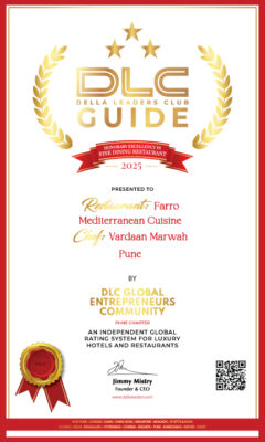 Nestled in Koregaon Park, Pune, Farro is a refined yet relaxed fine-dining restaurant co-founded by Chef Vardaan Marwah and Aman Talreja. Named after the ancient grain ‘farro’ (also called Khapli or Emmer), its menu honours heritage while embracing inventive modern flavours. The interiors—beige curved walls, lime plaster, terracotta, teak wood and lush plants—offer warm, earthy elegance. Expect imaginative global plates, signature cocktails & an atmosphere that balances artistry with approachability.