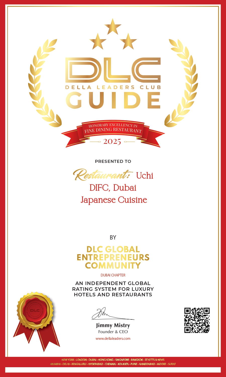 Uchi, DIFC, Dubai, recognised in the DLC Guide Dubai 2025 Listing.
