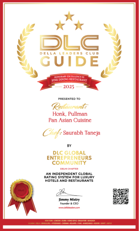 Celebrated as one of the world’s most distinguished Pan-Asian dining destinations, Honk has been awarded the prestigious DLC Guide recognition for its outstanding contribution to the city’s gastronomic landscape. With its dynamic flavours, modern presentation, and impeccable service, Honk stands as a benchmark of excellence where culinary artistry, ambience, and service converge seamlessly.