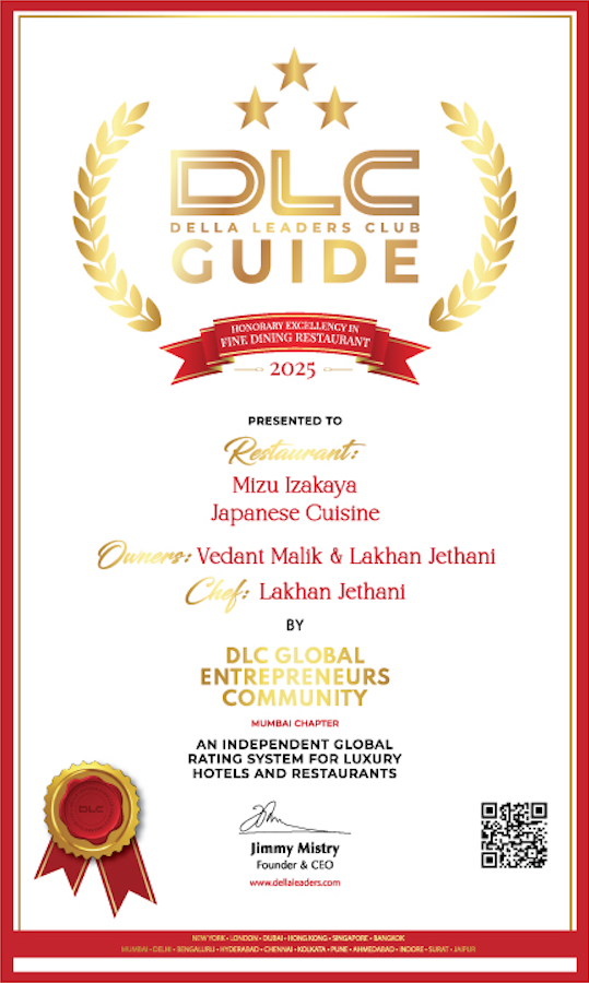 Mizu, Mumbai, recognised in the DLC Guide Mumbai 2025 Listing.